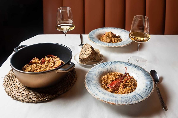 Aleteo, el mar de Rocacho, es el nuevo restaurante del grupo que pone la mirada al mar. Un espacio, situado en el emblemático y renovado edificio en la confluencia de María de Molina, 4, con el Paseo de la Castellana, donde los pescados frescos del día y los mariscos vivos llegan desde diferentes puntos de nuestro país. El restaurante nace con la intención de llevar el lenguaje del grupo a un nuevo territorio, sin perder su esencia: brasas, producto sobresaliente, una cocina construida desde el sabor —muestra de ello es su plato estrella, la nécora gallega a la sal, único en la capital y su bogavante azul nacional a la ibicenca— y dando su lugar a la experiencia en sala, en la que mantienen el culto a la sobremesa. Y es que Aleteo, también conserva esa costumbre tan nuestra de alargar la comida, como ya hacen el resto de los restaurantes del grupo. Su cocina ininterrumpida permite disfrutar de su propuesta gastronómica sin prisa, acompañarla con algunas de las más de 200 referenci