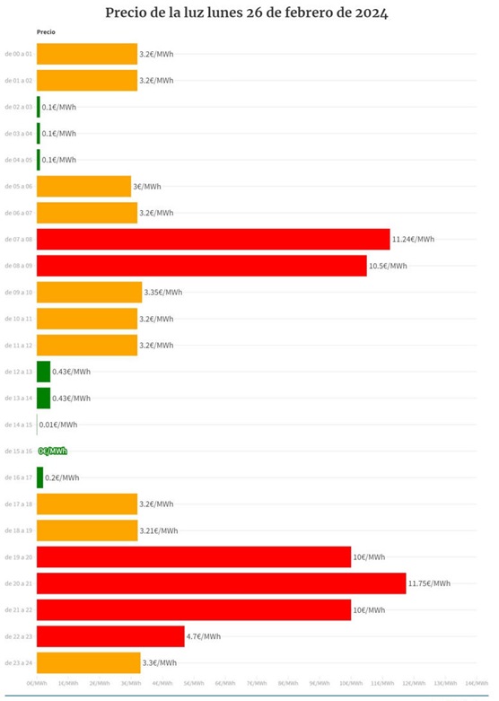 14.00 a 15.00: 0,01 €/MWh