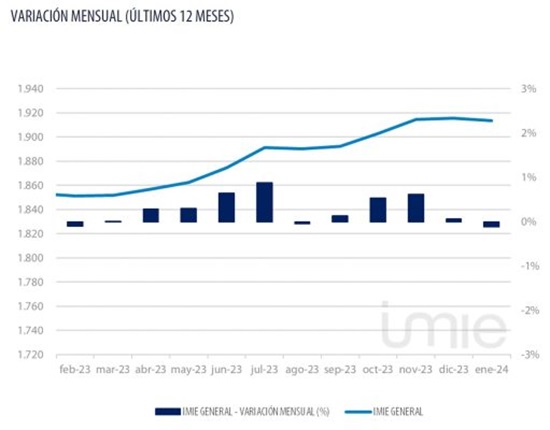 La variación respecto a enero de 2023 se sitúa en el 3,3 %, que supone la menor tasa de incremento interanual desde septiembre de 2021. “En enero...
