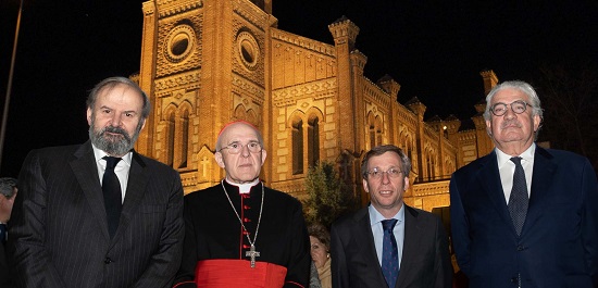 La iluminación, inaugurada, resalta la belleza exterior de las fachadas y la torre de estilo neomudéjar de la Iglesia de Santa Cristina, situada ...