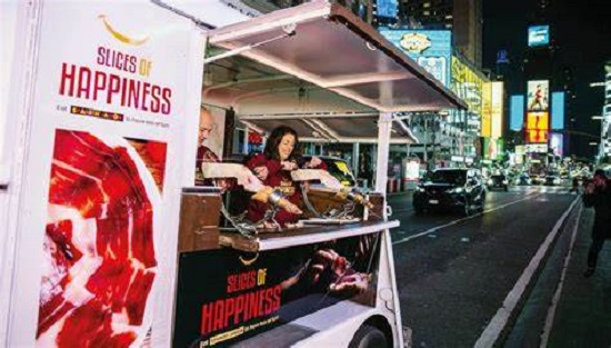 La campaña recorrió la ciudad neoyorkina, durante el 19 y 20 de marzo, regalando felicidad en forma de jamón a los afortunados turistas que pasea...